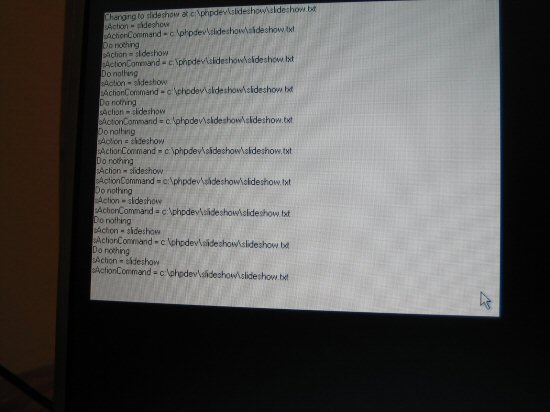 For obvious reasons I wanted the picture frame to be controlled from another machine on the network, so the first thing to be installed was Apache. Again, for quick setup I decided to install trusty old PHPDev, which I’d had lying around for ages. True, it’s not very secure, and using an old installer meant I got rather outdated versions of Apache and PHP, but the out-of-the-box setup was good enough for me.